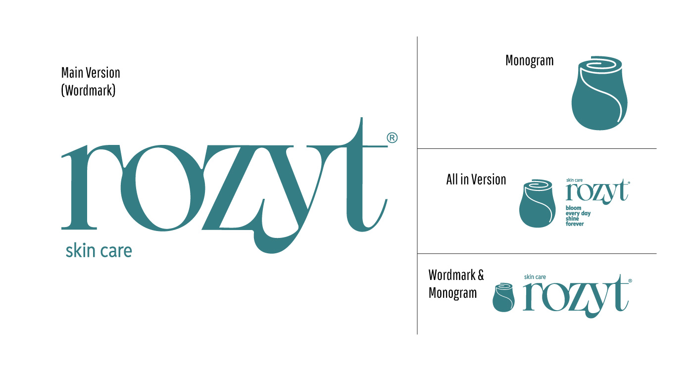 The Rozyt® Wordmark comes in multiple approved formats to ensure versatility and consistency across all applications. Each layout whether stacked, horizontal, or compact is designed to preserve brand identity while adapting to various spaces and mediums.